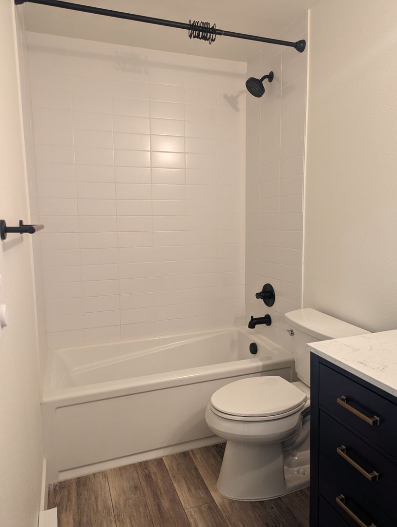 The bedroom includes a walk-in closet, and the unit is equipped with an in-home washer and dryer, along with a well-sized bathroom for added comfort.